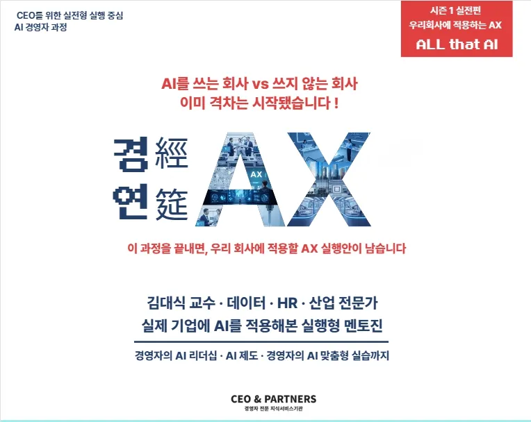김대식 교수의 경연AI 시즌3 이후, 하반기에 ‘경연AX(가칭)’ 과정이 오픈될 예정입니다.